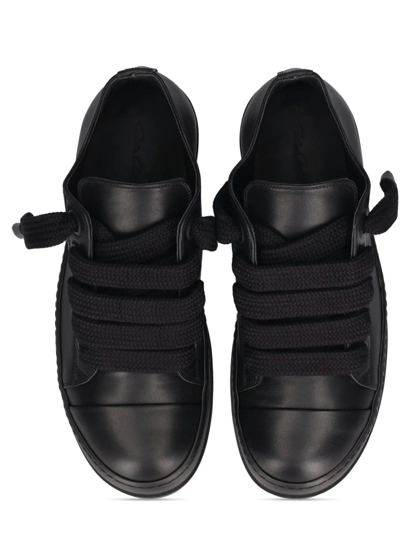Rick Owens Porterville Jumbo Laced Abstract Sneakers - Black The Rick Owens DRKSHDW Low Top Jumbo Lace Sneakers are set to dominate the streetwear-luxury footwear market and become the most hyped footwear for the SS24 season Emerging from the Lido Collection, these sneakers feature a 4-eyelet jumbo lace-up system, crafted from waterproof padded material, and a rounded calf leather toe-cap.